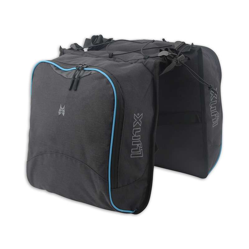 Deze dubbele lichtgewicht fietstas van Lynx is gemaakt van waterafstotend polyester-ripstop. De tassen hebben samen een inhoud van 20 liter en zijn functioneel ingericht met vier vakken aan beide kanten, met elastiek of rits. De fietstassen zijn makkelijk te bevestigen met bandjes aan de drager. Aan de bovenzijde tussen beide tassen zit ook nog een elastiek om bijvoorbeeld de regenjas onder te doen.
