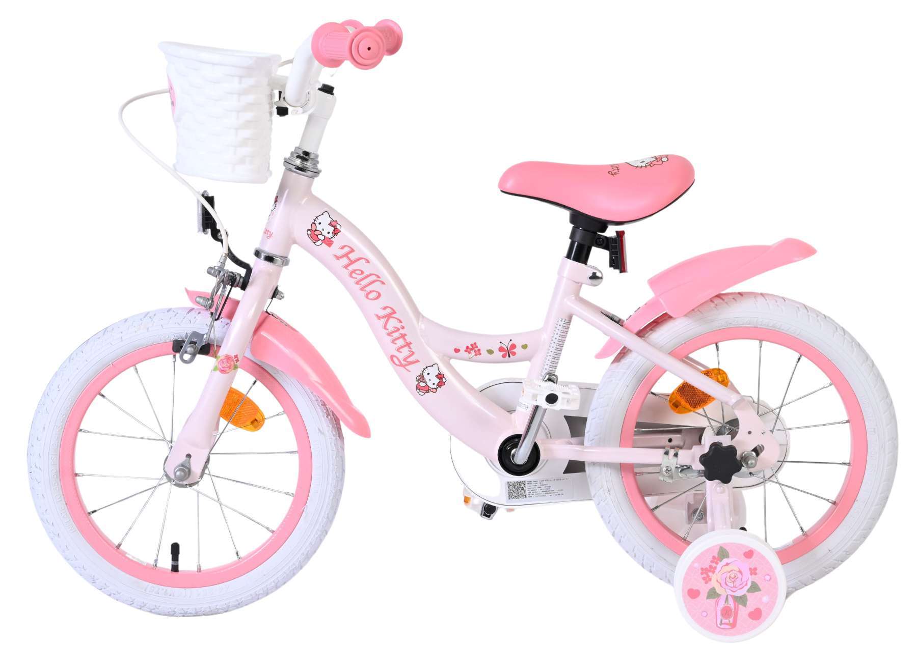 Met de Volare Hello Kitty 14 inch kinderfiets in lichtroze wordt leren fietsen een feestje. Deze vrolijke fiets is ontworpen om jonge fietsers een veilige en comfortabele start te geven, met een stabiele en kindvriendelijke opbouw.