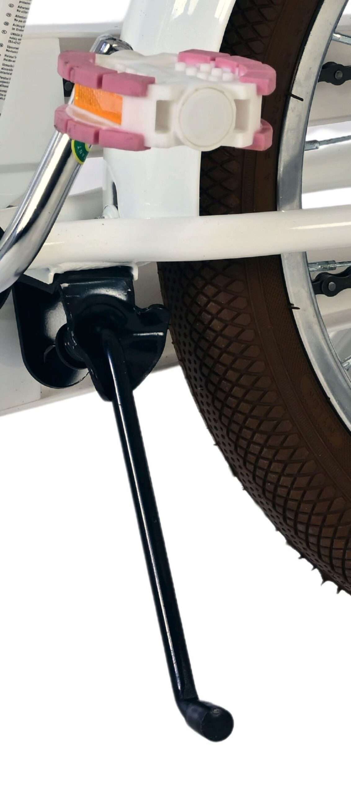 Veiligheid staat voorop! Daarom heeft deze gave fiets geen terugtraprem maar twee handremmen, afneembare zijwieltjes en een gesloten kettingkast. De fiets heeft reflectoren van voor, achter en in de wielen. Ook aan het comfort is gedacht. De mooie witte Volare fiets heeft een comfortabel zacht zadel , een poppenzitje, vrolijke handvatversieringen en een handig rieten mandje. Om zo lang mogelijk van de fiets te kunnen genieten zijn het zadel en stuur in hoogte verstelbaar. Wordt geleverd inclusief al het montagemateriaal dat nodig is om de fiets in elkaar te zetten!