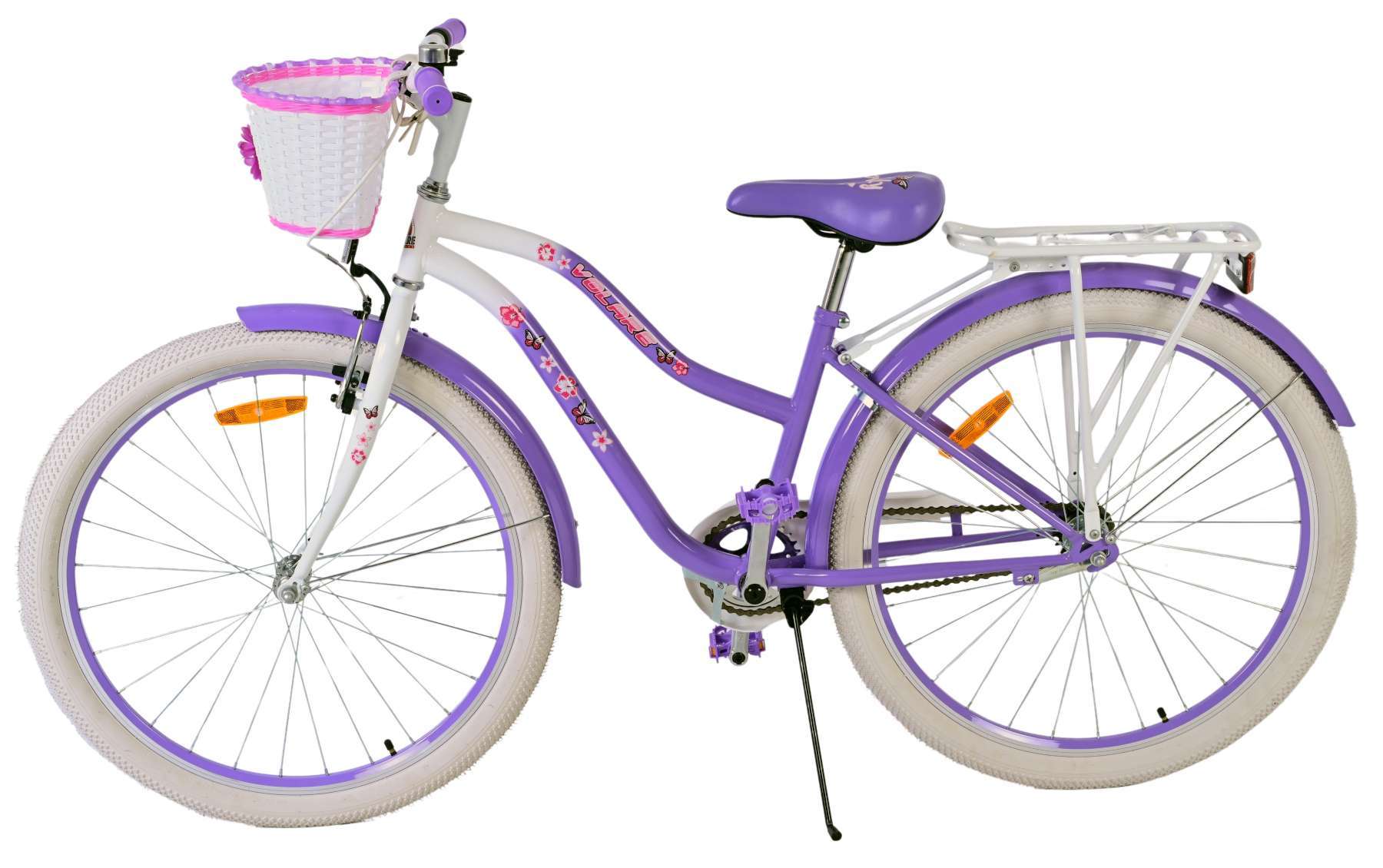 Veiligheid staat voorop! Daarom heeft deze leuke fiets een handrem en terugtraprem. Daarnaast heeft de fiets een leuke bel, reflectoren voor, achter en in de wielen. De mooie paarse Volare fiets heeft een vrolijk mandje en een achterdrager. Om zo lang mogelijk van de fiets te kunnen genieten zijn het zadel en stuur in hoogte verstelbaar.