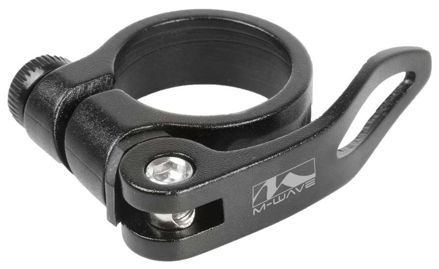M-Wave Clampy-QR zadelpenklem. Specificaties: Klemdiameter: 34,9 mm Dikte: 4 mm Hoogte: 15 mm Materiaal: aluminium Gewicht: 40 gram Kleur: zwart Met snelspanner