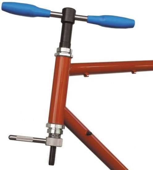 Het gereedschap is ervoor om de onder- en de bovencup gelijkmatig in de balhoofdbuis te persen. Voor gebruik is het sterk aanbevolen te controleren of de cuppassing niet is beschadigd. Mocht dit wel het geval zijn, pas dan de maat met de balhoofdfrees aan.