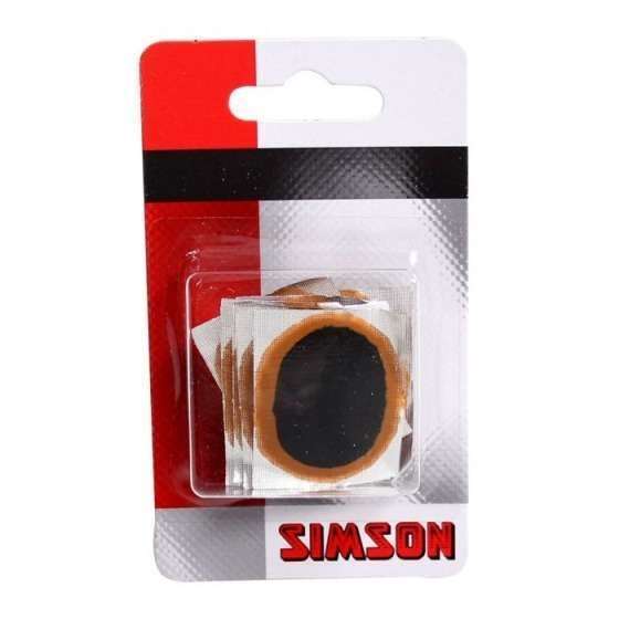 Simson Binnenbandpleisters Ovaal. Met deze vulkanisatie pleisters is een lekke binnenband zo geplakt. Geschikt voor vrijwel alle binnenbanden. Ook geschikt ter aanvulling van de gebruikte plakkers uit de Simson Reparatiedoos. De inhoud bestaat uit 8 stuks binnenbandpleisters Ovaal. Te gebruiken in combinatie met de Simson Solutie.