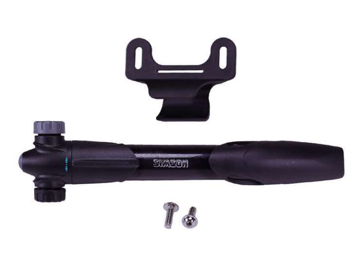 De Simson Framepomp ‘Exellent’ wordt geleverd met handige framehouder en bevestigingsmaterialen.